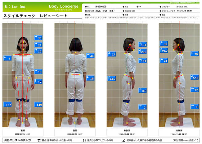 専用の姿勢測定ソフトを使用し、身体の歪みを詳細に分析します。筋肉のバランスや姿勢の傾向を可視化することで、将来起こりやすい姿勢の変化や歪みの原因を分かりやすくお伝えします。